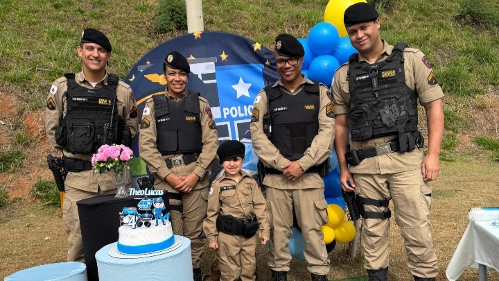 A convite da família, policiais militares compareceram ao aniversário do pequeno Theo, que nesta data completa 4 anos de idade.