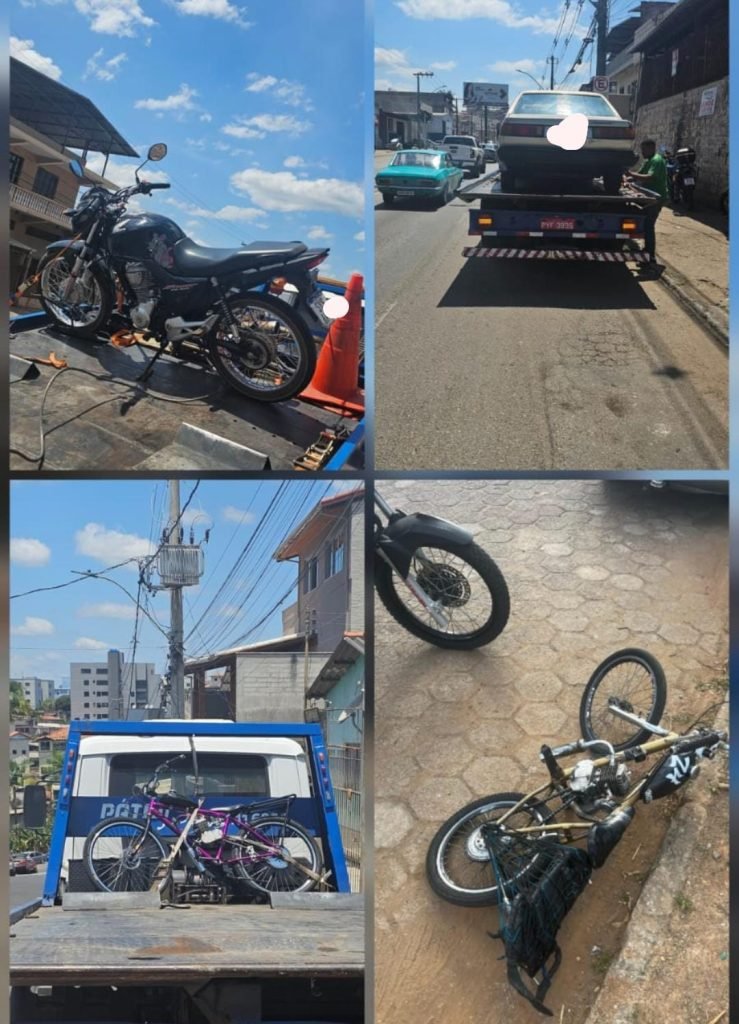 Duas bicicletas motorizadas e dois veículos foram removidos para o pátio credenciado, bem como lavrados os Autos de Infrações correspondentes.