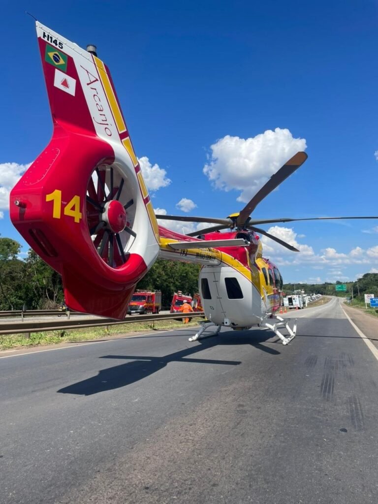 Uma vítima grave socorrida e retirada, deixada aos cuidados da equipe aérea da aeronave Arcanjo, transportada para o HPS João XXIII.