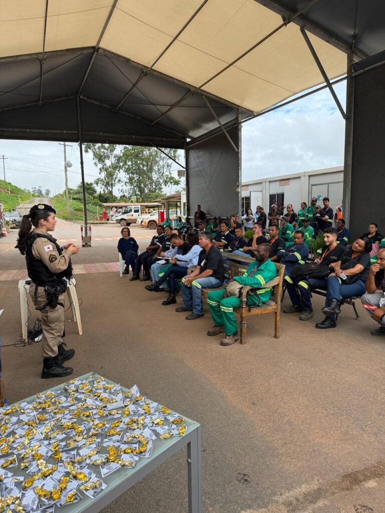 A Polícia Militar de Minas Gerais realizou palestra preventiva com o tema “Carnaval Seguro”, direcionada a funcionários de uma empresa instalada na região da Mina Água Limpa.