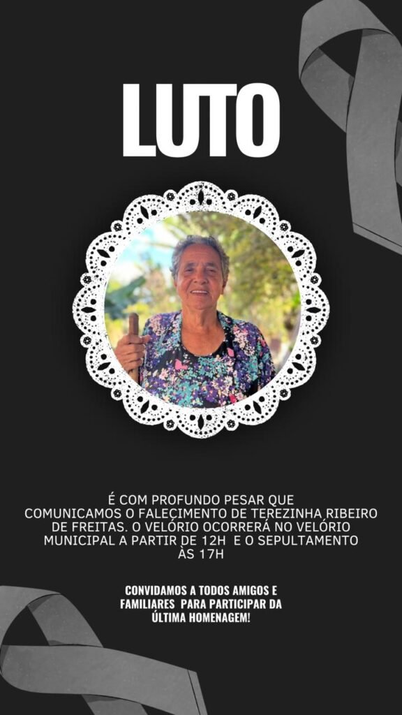 É com profundo sentimento de pesar que informamos o falecimento de Dona Terezinha Ribeiro de Freitas.