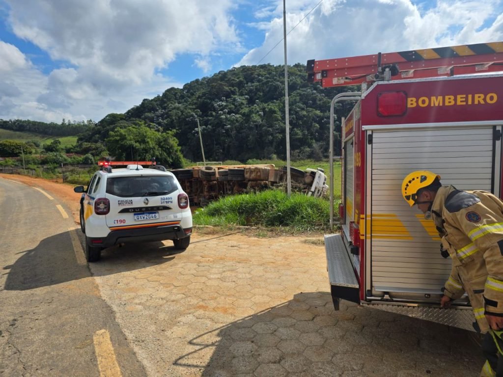 Minas Gerais; Entre Lamim e Senhora de Oliveira Capotamento de caminhão com vítima presa às ferragens