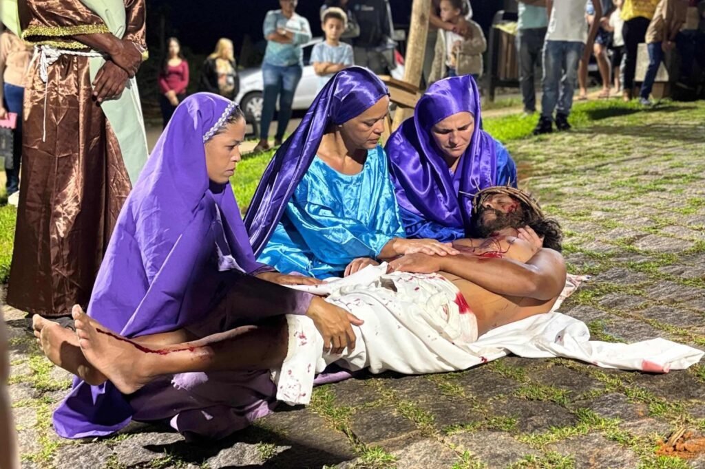 Outro momento de destaque foi a Via Sacra encenada pelos jovens do Encontro de Jovens com Cristo (EJC) e pelos crismandos, que percorreram o trajeto entre a Igreja Matriz de Santo Antônio e a Capela do Senhor do Bonfim, representando as 14 estações da Paixão de Cristo.