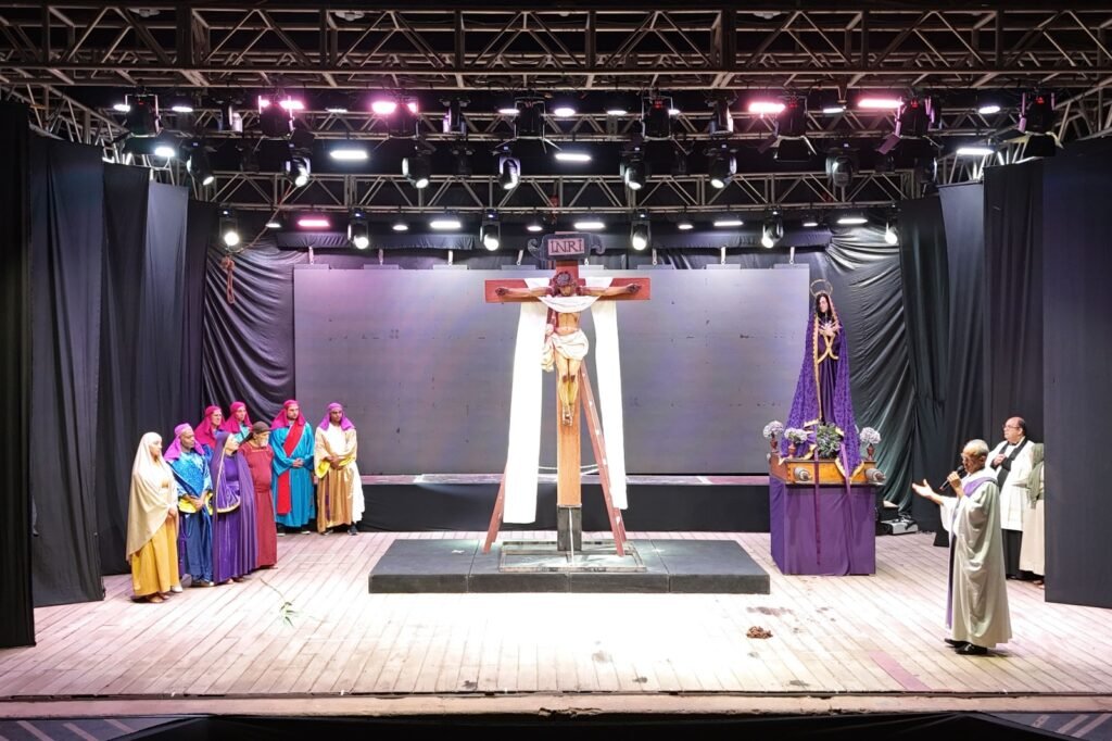 O grupo Âncora Cia de Teatro, que completa 51 anos em 2026, apresentou o espetáculo “Os Passos da Agonia”, no Ginásio Emília Mendes da Fonseca. Reconhecida como Patrimônio Cultural Imaterial de Santa Bárbara, a encenação reuniu um grande público em um momento de reflexão, devoção e celebração da fé cristã.