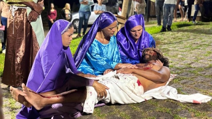 Outro momento de destaque foi a Via Sacra encenada pelos jovens do Encontro de Jovens com Cristo (EJC) e pelos crismandos, que percorreram o trajeto entre a Igreja Matriz de Santo Antônio e a Capela do Senhor do Bonfim, representando as 14 estações da Paixão de Cristo.
