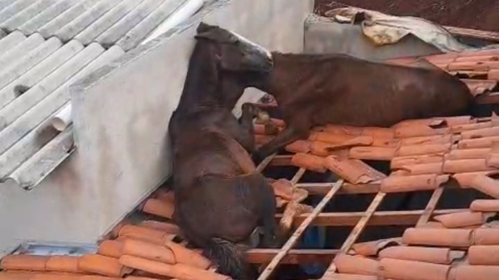 NEPOMUCENO: cavalos caem em telhado de varanda e são resgatados por militares do Corpo de Bombeiros (assista os vídeos)