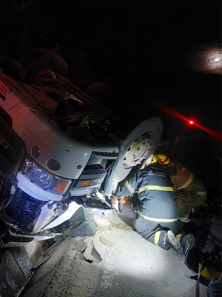 Somente após o içamento controlado do caminhão, realizado pelo guincho sob orientação das equipes de resgate, foi possível aliviar a pressão sobre a cabine e criar um ponto seguro de acesso à vítima.