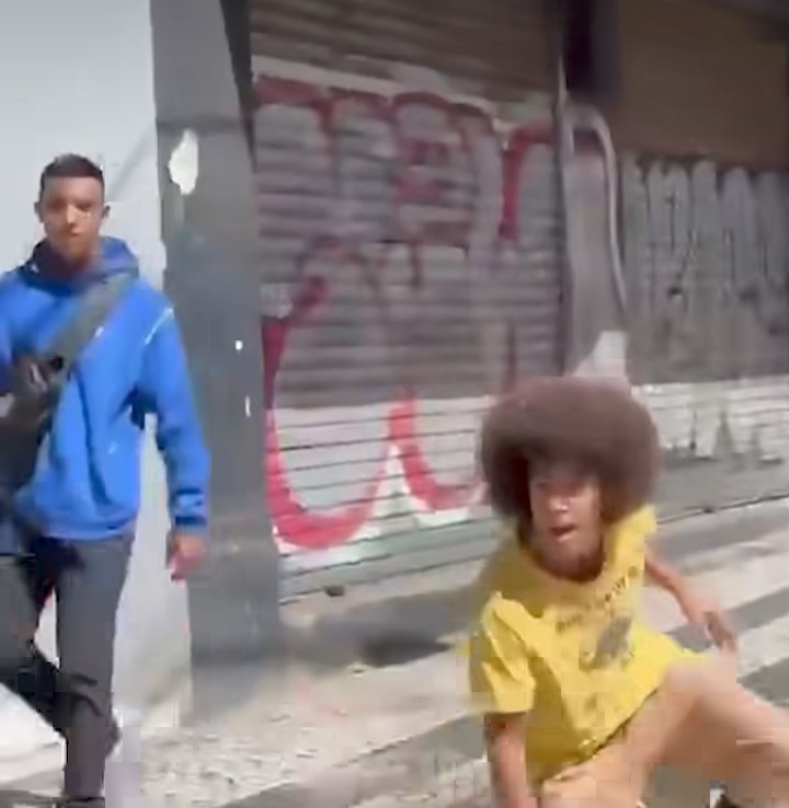 O deputado estadual Renato Freitas, de camisa amarela, trocou porradas com esse homem de camisa preta, o de azul também estava junto do deputado e sobrou para ele também.