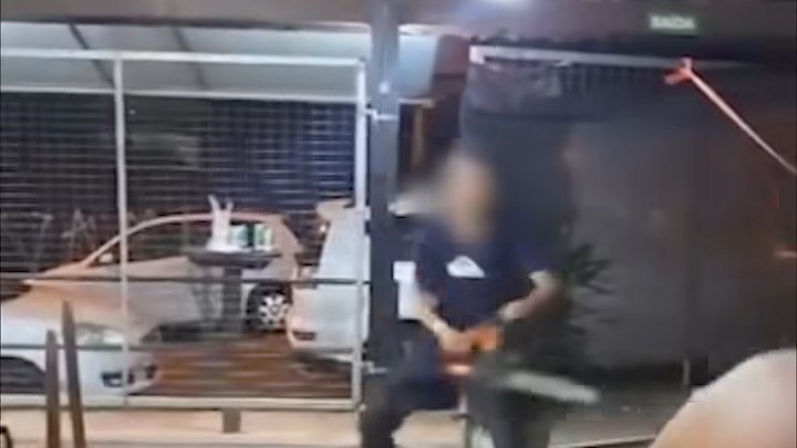 Outras pessoas que estavam no estabelecimento começaram a jogar garrafas contra o elemento da moto serra.