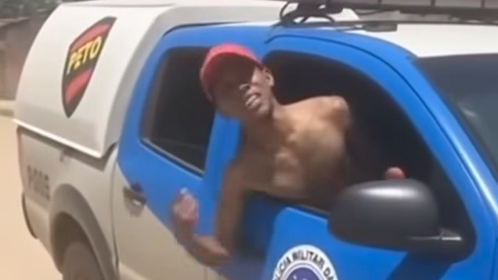 Algum tempo depois, um corte no vídeo e o elemento aparece chorando, não sabemos se tinha um militar junto dele, mas mudou de situação CONTINUAVA DIZENDO QUE O PETO ERA MAL O PETO ERA MAL MAS AGORA ESTAVA CHORANDO.