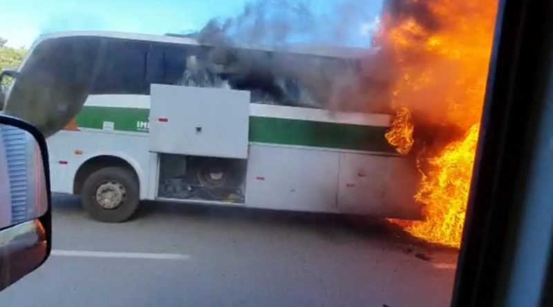 Ônibus acaba de pegar fogo em Bela Vista de Minas MG