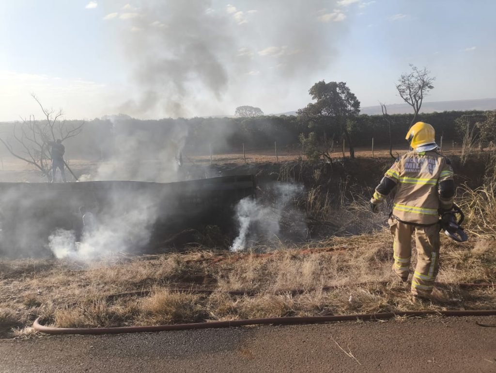 Patrocinio: incêndio em carreta carregada de bois