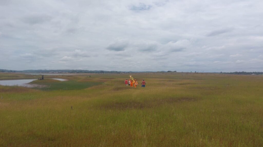 Devido às condições do terreno, com presença de lama que impossibilitava o acesso da viatura até o ponto exato da ocorrência, o veículo permaneceu estacionado em um local próximo.