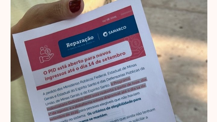 | Programa da Samarco paga indenização fixa de R$ 35 mil e já alcançou mais de 219 mil pessoas e empresas; Mais de R$ 7 bi já foram pagos em indenizações Belo Horizonte, 12 de setembro de 2025 – Este é o último fim de semana para ingresso no Programa Indenizatório Definitivo (PID), que estará disponível apenas até este domingo, 14 de setembro de 2025, às 23h59. Até o momento, o PID já indenizou mais de 219 mil pessoas, totalizando mais de R$ 7 bilhões em indenizações. Ao todo, 320 mil requerimentos já foram recebidos na plataforma e 278 mil acordos firmados, reforçando o alcance da reparação. O programa garante indenização de R$ 35 mil em parcela única a pessoas físicas e jurídicas que se enquadram nos critérios estabelecidos no Novo Acordo do Rio Doce. O pagamento é realizado em até dez dias após a homologação judicial do acordo individual.“Os números demonstram o amplo alcance do PID. O processo para envio de requerimento na plataforma é simplificado, gratuito, e os interessados devem ingressar o quanto antes para não perderem essa última oportunidade de ingresso”, destaca a especialista Jurídico da Samarco, Laura Sarti Mozelli. Como ingressar Para ingressar na plataforma, o interessado deve procurar a Defensoria Pública, com atendimento gratuito, ou advogado particular. É importante destacar que os honorários advocatícios correspondentes a 5% da indenização são custeados pela Samarco, sem qualquer desconto para o requerente. Eventuais valores adicionais a título de honorários advocatícios, negociados à parte entre advogado e requerente, não serão arcados pela Samarco. Critérios O PID é voltado a pessoas físicas e jurídicas que atendam aos critérios definidos no Novo Acordo, como: · Ter idade superior a 16 anos na data do rompimento (05/11/2015); · Ter solicitado cadastro na Fundação Renova (em liquidação) até 31/12/2021, ou possuir ação judicial no Brasil ou no exterior ajuizada até 26/10/2021, ou ter ingressado no sistema Novel até 29/09/2023 (respeitadas as hipóteses que consideraram a data de 30/04/2020) e não ter celebrado acordo; · Apresentar comprovante de residência (emitido em qualquer data, nas localidades listadas no Acordo), documento de identificação com CPF (para requerimentos apresentados por pessoas físicas) e procuração outorgada a advogado particular ou declaração de outorga de poderes à Defensoria Pública. Os interessados podem verificar se estão aptos ao PID por meio do Link. Mais informações estão disponíveis em samarco.com/indenizacao ou pela Central de Relacionamento: 0800 031 2303. |