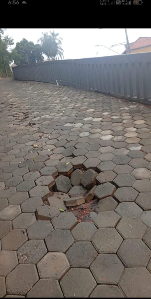 Os bloquetes são muito bons, perfeitos, mas parece que usaram areia e não fizeram uma base, aí dá nisso.