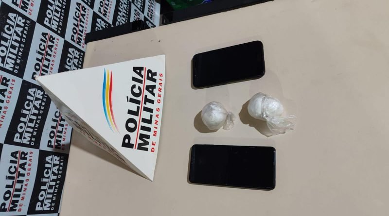 Realizadas busca pessoal, foram encontradas duas porções de cocaína em uma bolsa que estava sob a posse do abordado.