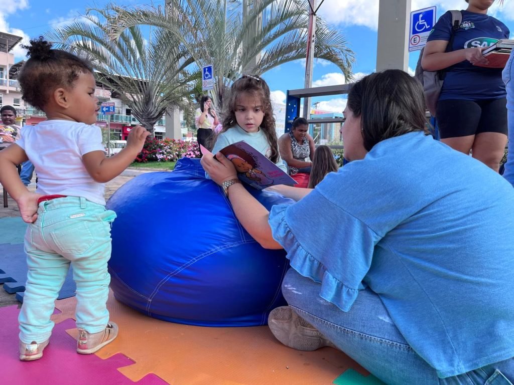 O local também recebeu uma edição especial do projeto Ler pra Valer em Movimento, que levou a biblioteca itinerante e diversas brincadeiras para o público.