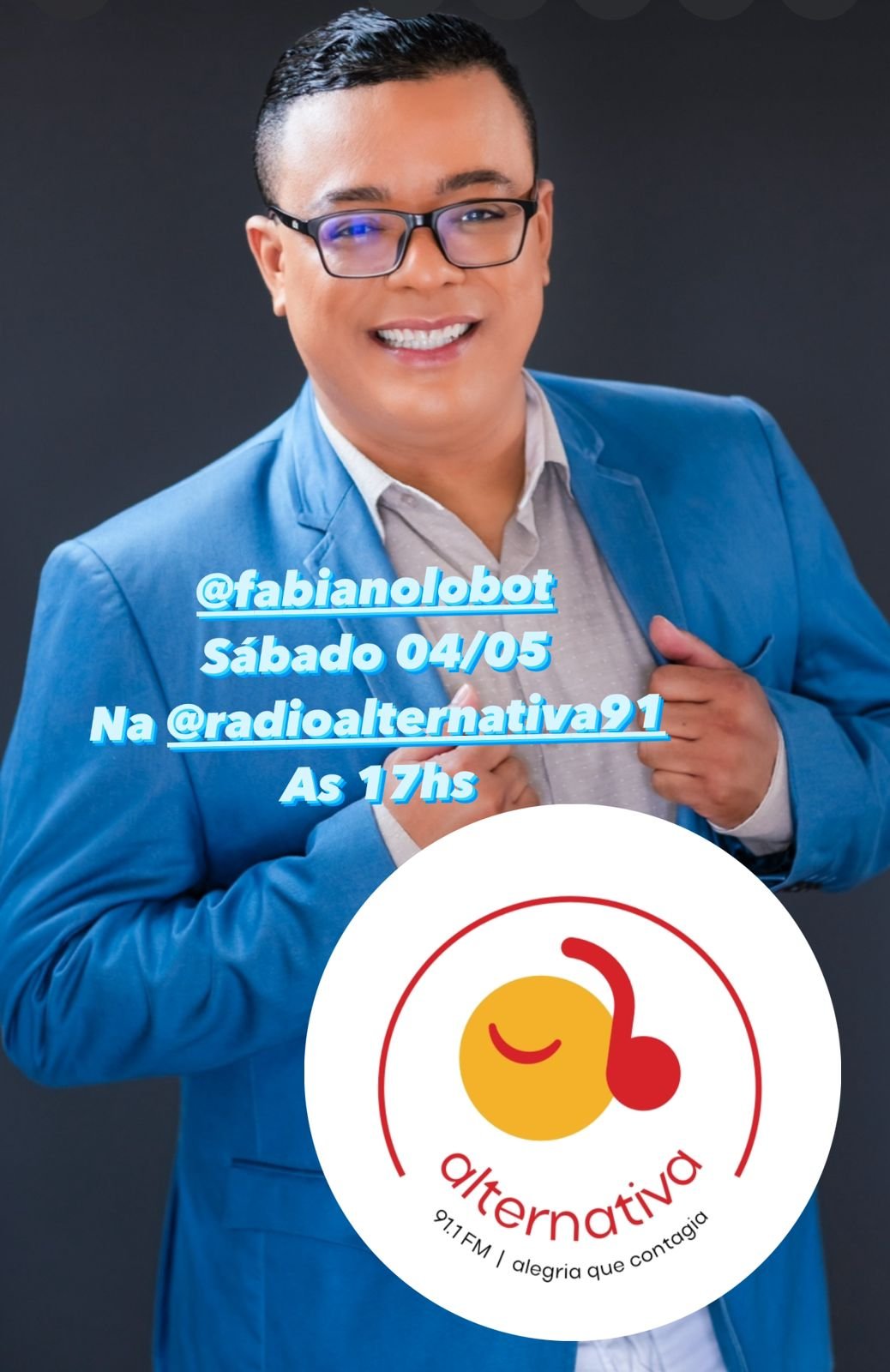 O Digital Influencer Fabiano Lobot estará na Rádio Alternativa FM 91,1 nesse sábado dia (4) de maio às 17 horas.