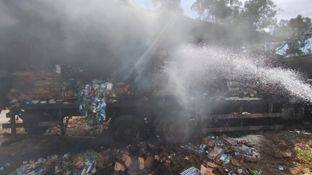 SABARÁ: BOMBEIROS COMBATEM INCÊNDIO EM CAMINHÃO NA BR-381
