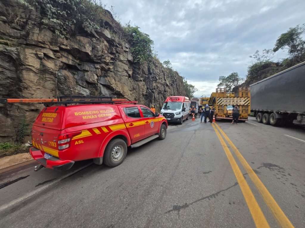 Sabará (Ravena): acidente grave entre caminhão e carreta com vítima presa às ferragens na manhã de hoje