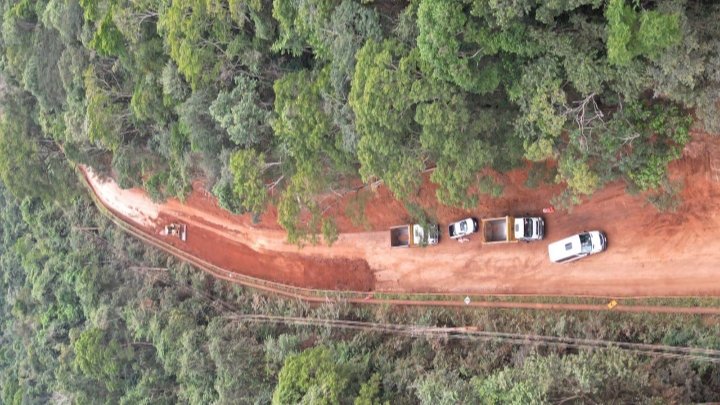 A pavimentação da estrada de acesso à comunidade de Vargem da Lua, iniciada no começo de maio, já apresenta avanços significativos. Até o momento, cerca de 50% da área total do projeto passou por destocamento e limpeza da vegetação. Atualmente, a obra está na fase de terraplenagem e instalação de drenagens, com a construção de bueiros para grota próximos ao trecho que receberá o asfalto.