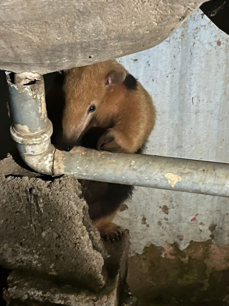 Na noite de sexta-feira (09/01), por volta das 23h, uma guarnição do Corpo de Bombeiros deslocou até o município de São Gotardo, para realizar a captura de um tamanduá-mirim localizado debaixo do tanque de lavar roupas da residência.