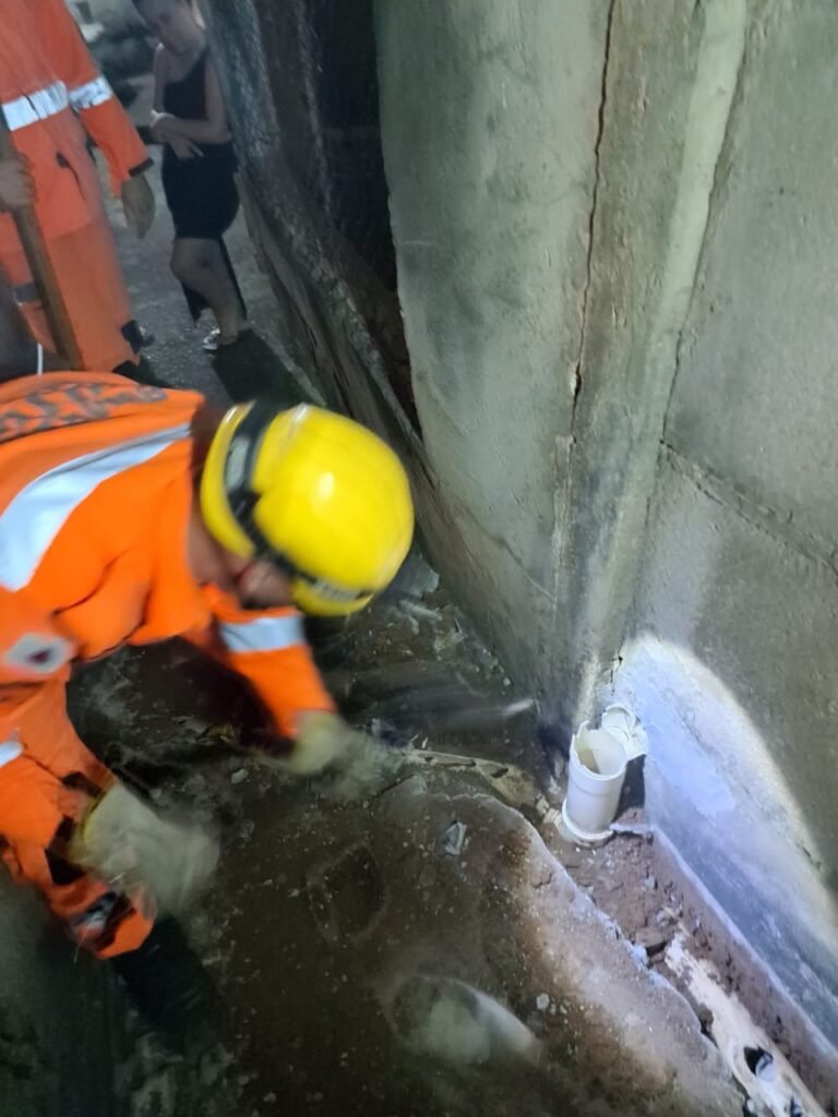 No local, os militares constataram que se tratava de um gato preso no interior de um cano de água pluvial de uma residência, sem conseguir sair por conta própria. Diante da situação, a equipe realizou a avaliação do cenário e utilizou ferramentas e técnicas apropriadas de salvamento para acessar o local de forma segura.
