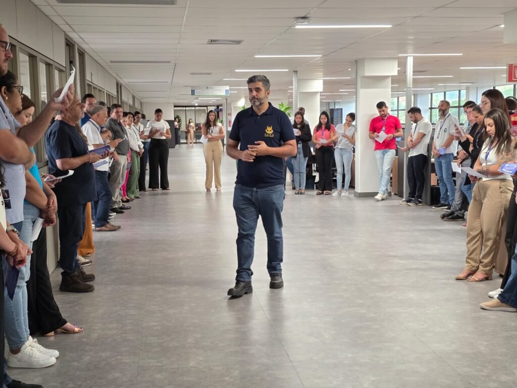 Já a Secretaria de Gestão de Pessoas, por meio da equipe de Segurança do Trabalho, realizou um Diálogo Diário de Segurança (DDS) no Centro Administrativo, com visitas aos andares do prédio. A atividade teve como foco a saúde mental no ambiente de trabalho e incluiu a distribuição de panfletos com orientações práticas para o cuidado com a saúde, como a prática de atividades físicas, alimentação equilibrada, redução do tempo de uso de telas e o incentivo à busca por apoio especializado, a exemplo do setor de Acolhimento da secretaria.