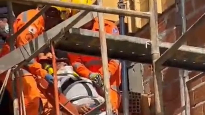 SETE LAGOAS: BOMBEIROS ATENDEM OCORRÊNCIA DE HOMEM QUE SOFREU ACIDENTE DE TRABALHO EM OBRA (VEJA O VÍDEO)