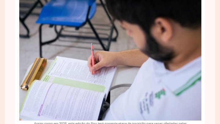 Leia mais:Sisu 2026 ofertará 274,8 mil vagas