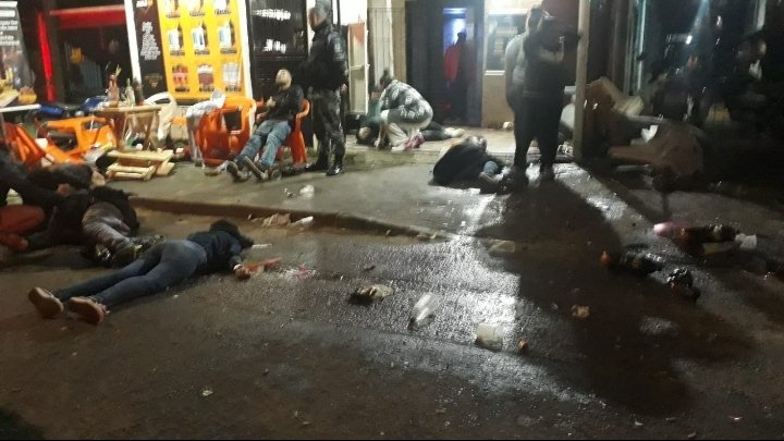 A poucos instantes na Rua Rio Grande, n° 115, bairro Campo Novo em Porto Alegre, indivíduos em um Ford ka branco, chegaram em um “pagode” no endereço citado, e efetuaram diversos disparos de arma de fogo, alvejando várias pessoas (sem números precisos de baleados).