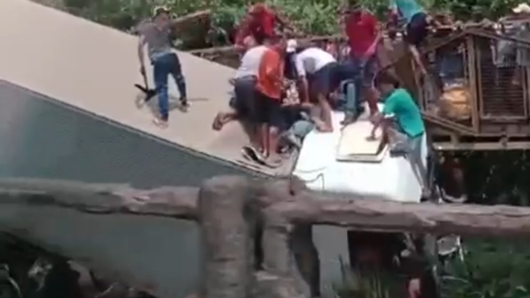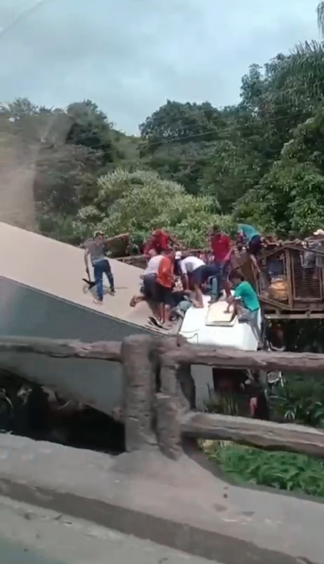 Como vocês podem ver no vídeo acima, foi igual há um formigueiro, o caminhão caiu na ponte do córrego e os saqueadores entraram com gosto de gás, segundo informações a carga era de um alto valor (produtos eletrônicos), muitos carros de passagem pela pista também pararam e seus ocupantes promoveram os saques.