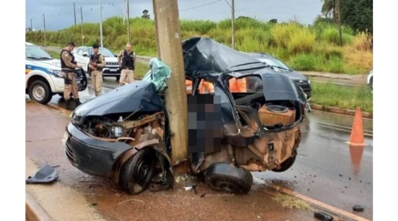 VEÍCULO BATE EM POSTE E MOTORISTA MORRE