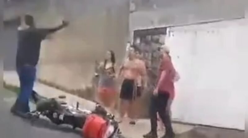 Imagens via vídeos que andam pela internet é possível ver um agressor partindo para cima do motoboy com uma muleta.