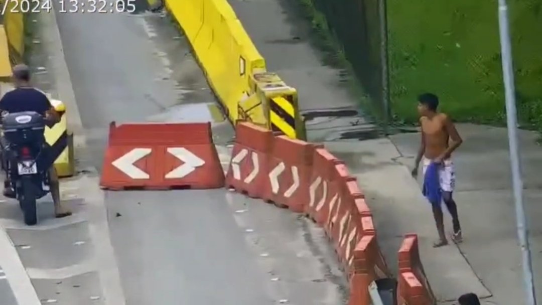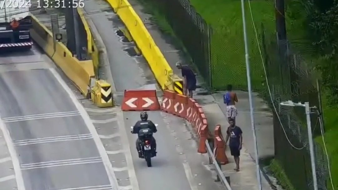O trio aborda o PM tentando bloquear a passagem do Militar e sua motocicleta, um dos assaltantes anunciou o assalto e subiu na moto.