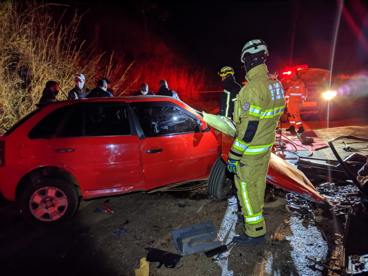 Também estiveram presentes equipes da PMMG e perito da PCMG. a vítima do sexo masculino A.F.S. 56 anos e do sexo feminino senhora V.N.F. (idade não confirmada), e ocupante do veículo vermelho a vítima do sexo masculino R.G.O. 32 anos.