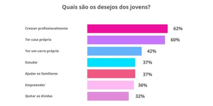 O investimento atual com o dinheiro também chama atenção: 51% dos jovens economizam para comprar uma casa, carro e outros. Além disso, 34% utilizam para pagamento de contas básicas e 33% pretendem investir.