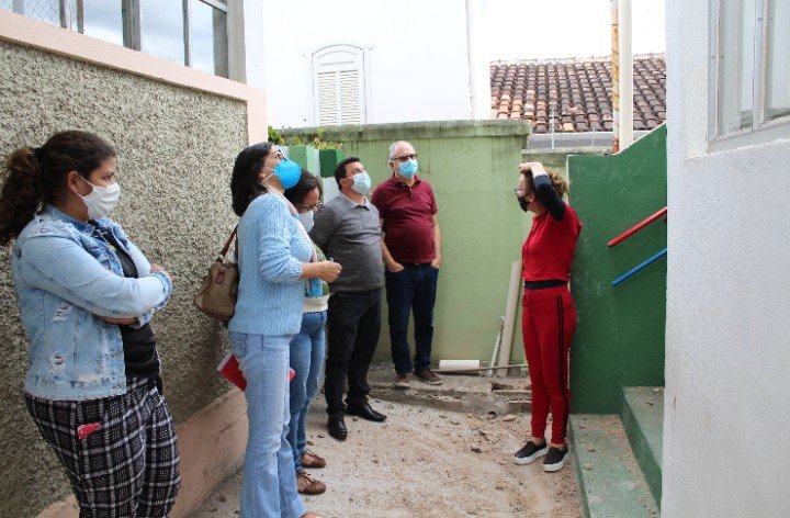 A Escola Municipal Efigênio Mota, que atende crianças menores de cinco anos, está recebendo manutenção das redes hidráulicas e elétricas, além de um novo telhado. Além disso, as adaptações para atender os protocolos sanitários como instalação de pias, dispensadores de álcool em gel, pintura indicativa de manutenção de distância já foram instaladas.