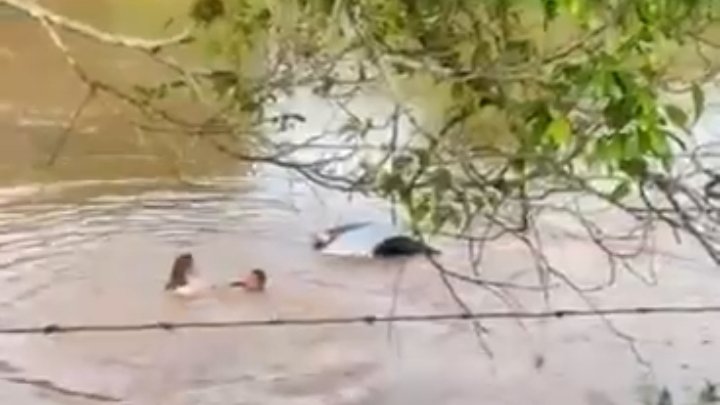 _CARRO CAI EM LAGOA E MULHER É SALVA POR MOTOCICLISTA QUE VIU O ACIDENTE E PULOU NA ÁGUA EM MINAS GERAIS_