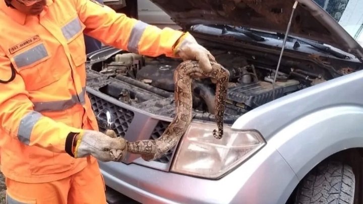 Uma jiboia foi encontrada na tarde desta sexta-feira (20) no filtro de ar de uma caminhonete em Muriaé. A captura do animal silvestre, que oferecia risco de ataque, foi realizada por uma equipe do Corpo de Bombeiros. Ninguém ficou ferido.
