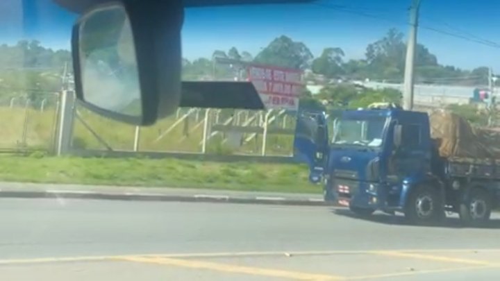 Ainda nas imagens, é possível ouvir que quem faz a filmagem começa a gritar desesperado para os condutores: ‘Sai, sai, sai’. O caminhão só para quando colide contra uma mureta. Segundo a Polícia Militar, o motorista do caminhão foi sequestrado momentos antes e mantido refém. Na sequência, ele foi liberado pelos criminosos, que fugiram com o veículo.