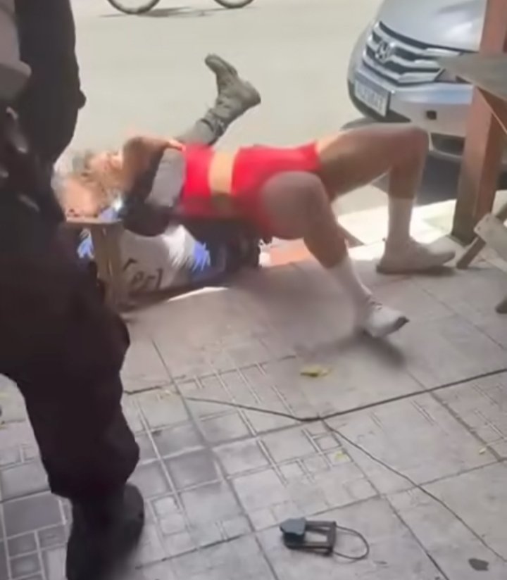 Onde uma mulher identificada como Mariana Leal protagonizou uma intensa luta corporal, isso mesmo a mulher lutou com dois policiais.
