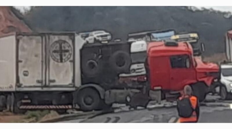 Abre Campo MG 13 de setembro de 2023. Na manhã de hoje, duas carretas caçamba e um caminhão baú frigorífico se envolveram em um acidente no Km 107 da BR-262.