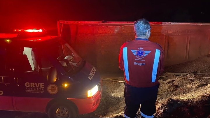 Uma carreta tombou na noite desta terça-feira 23 de agosto de 2022 na rodovia que liga a cidade de Barão de Cocais até o trevo da BR-381.