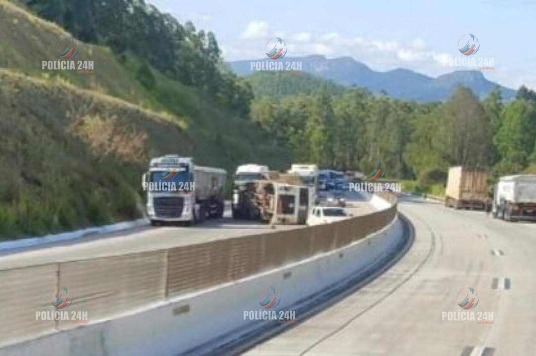 Agora a pouco por volta de 15:30 horas um Caminhão transportando botijões de gás tombou agora BR-381, próxima à Nova União, na pista sentido BH. Trânsito lento no local.