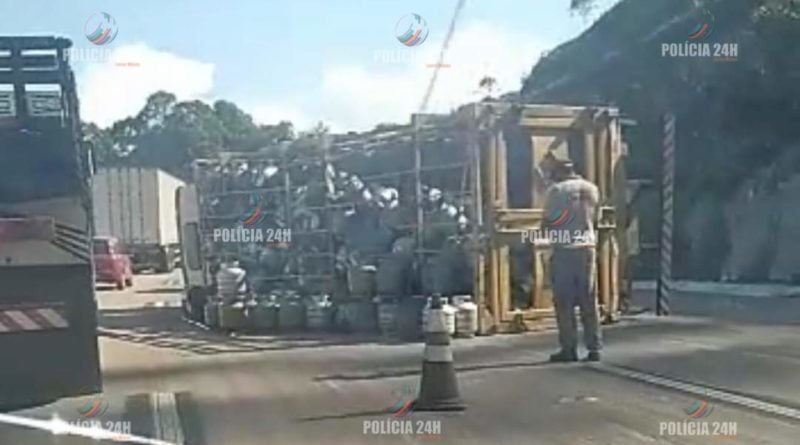 Agora a pouco por volta de 15:30 horas um Caminhão transportando botijões de gás tombou agora BR-381, próxima à Nova União, na pista sentido BH. Trânsito lento no local.