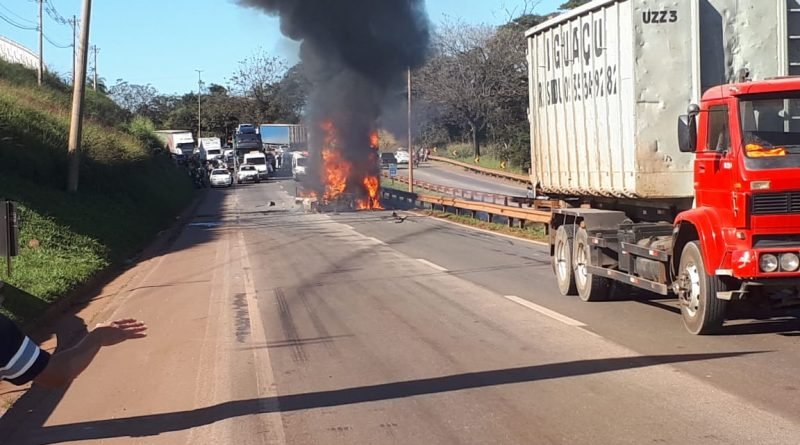 Comboio de Bombeiros desloca nesse momento para atender uma colisão entre uma carreta e um carro de passeio na rodovia. Segundo histórico, os veículos se incendiaram e há vítimas presas as ferragens. Ainda não se confirmou o número de vítimas e a PM já se encontra no local isolando e controlando o trânsito.