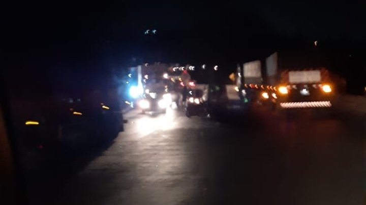 Em uma curva dois veículos colidiram-se frontalmente, o transito encontra-se lento e no momento há uma retenção no trânsito.
