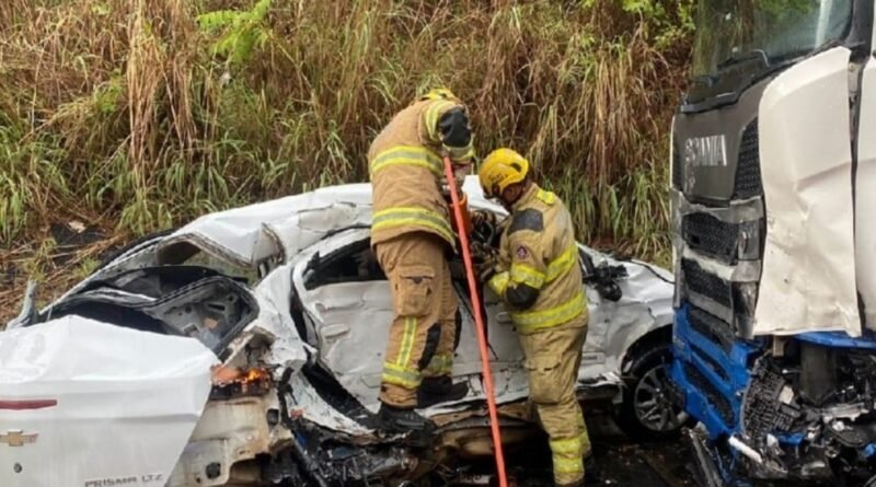 Acidente carro versus carreta deixa quatro mortes na BR-251 em Rubelita