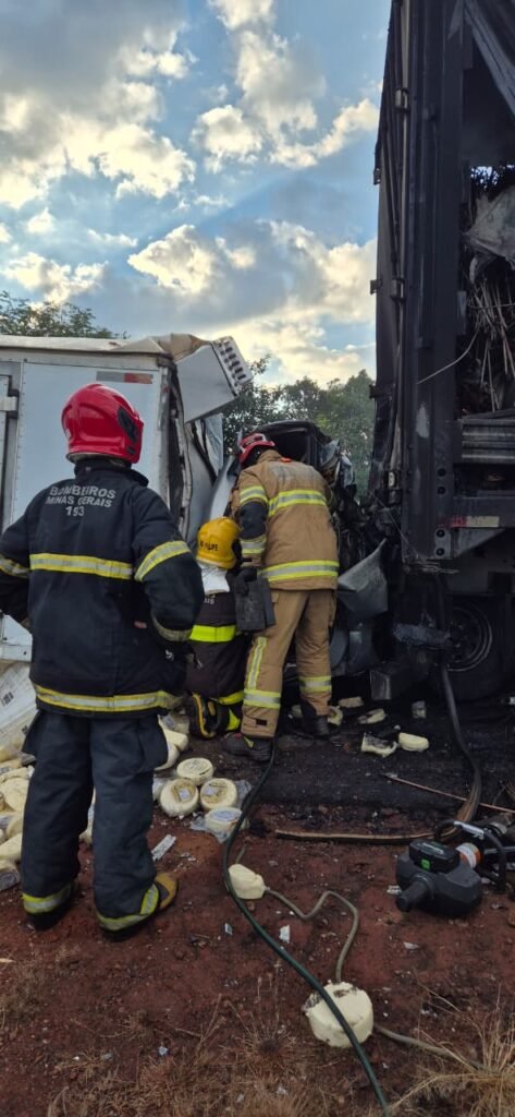 Guarnições do Pelotão de Sacramento atenderam ocorrência de colisão entre caminhão e caminhonete. O caminhão estava carregado de sucata e, durante o deslocamento na rodovia, a parte cargueira começou a pegar fogo, possivelmente, ocasionado por superaquecimento do sistema de freios. Logo em seguida, uma caminhonete F-350, que seguia no mesmo sentido, colidiu na traseira do caminhão em chamas. Dois homens que estavam na caminhonete – pai e filho, de 59 e 26 anos – ficaram preso às ferragens e morreram no local do acidente.